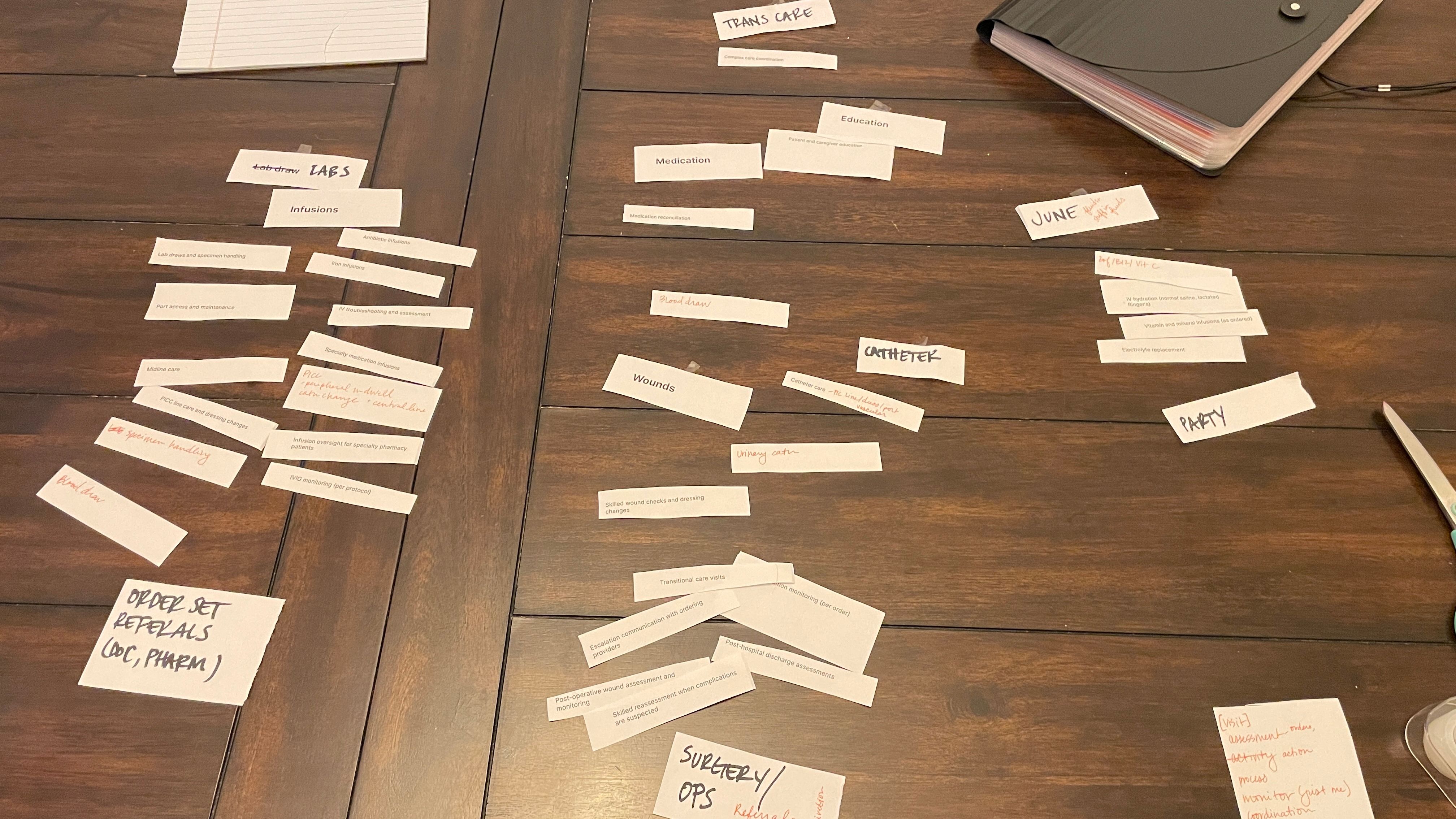 Card sorting for services